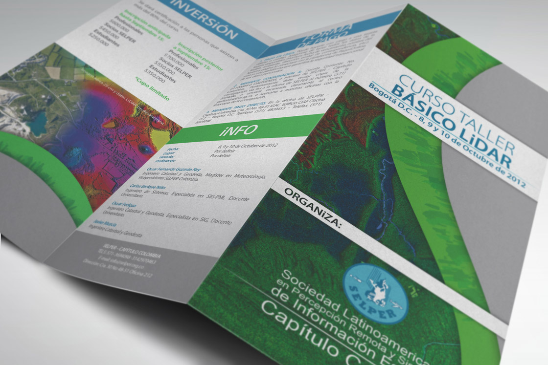 Diseño de brochure (Tríptico) para promocionar el Curso Taller de LiDAR 2012 organizado por Selper Capítulo Colombia.
