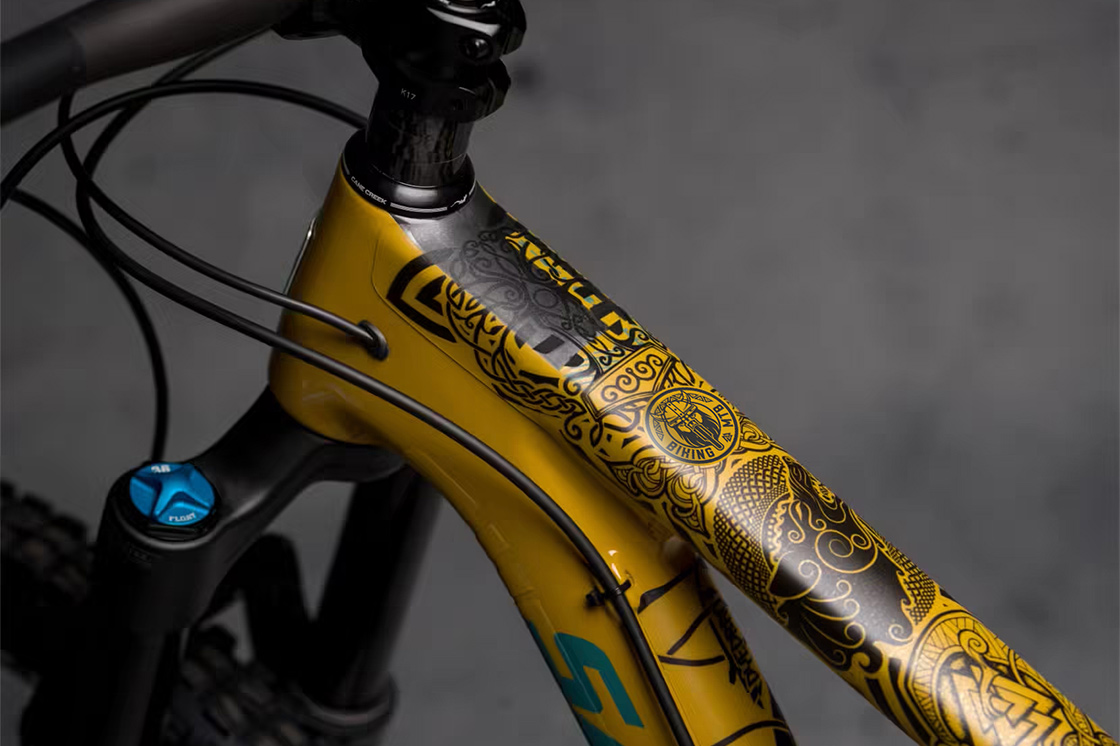 Además del diseño enfocado a este deporte se juega aprovechando la coincidencia en la pronunciación de los términos en inglés: BIKING (andar en bicicleta) y VIKING (vikingo), este último para hacer un símil entre la valentía y fuerza de un guerrero vikingo y el esfuerzo físico y mental que un ciclista de MTB necesita para terminar una travesía o ruta.